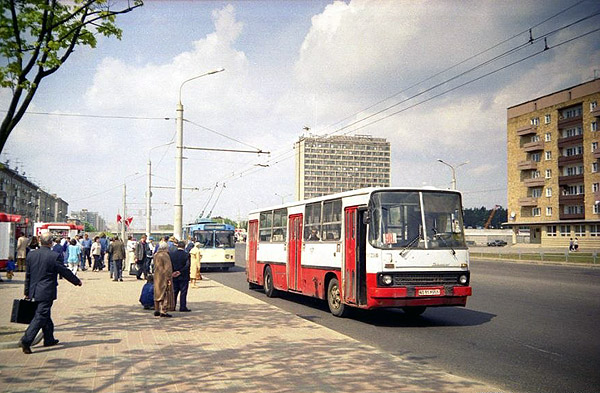Панарамны позірк праз аўтобусы на гасьцініцу "Турыст".
